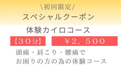 通いたいけど不安な方に体験で施術の良さを知って頂きたいと思い、特別体験メニューをご用意しております。